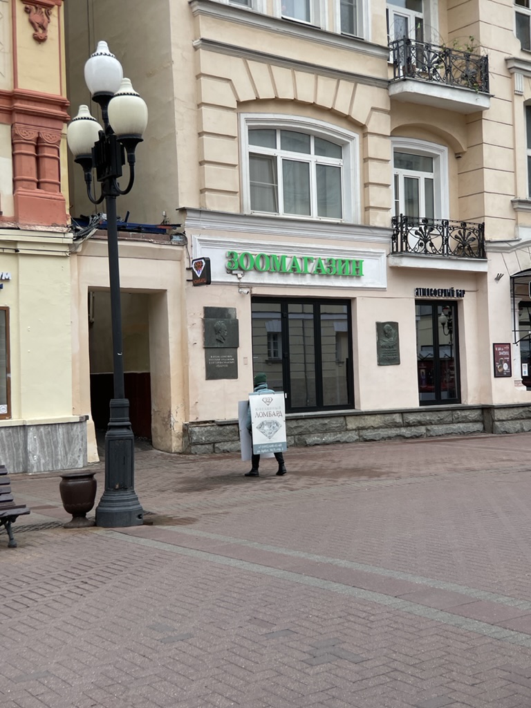 当然,现实里的广告也无处不在,在公交里,在电梯里,在所有人们会驻足的地方,在所有人们视线会停留的地方。蔡明亮的《郊游》里男主人公就坐着站在容易堵车的路口举着广告牌的工作。我也在莫斯科经常遇到穿着广告牌孤零零站在街上的人。只要看到广告,就知道哪里人流量大,哪里会堵车。